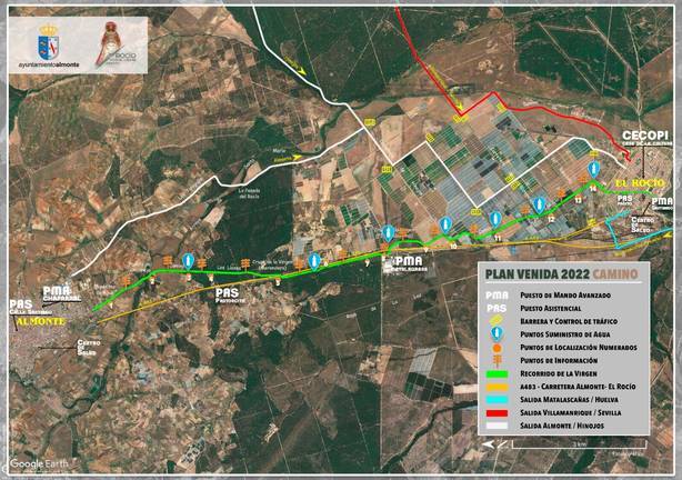 El Plan de Emergencias Municipal de Almonte se activará el día 20 a las 15.00 horas y será desactivado a las 00.00 horas del día 22, mientras que el Plan de Emergencias territorial de Andalucía en la provincia de Huelva se preactivará el día 22 a las 07.00 horas y se desactivará a las 23.00 horas.