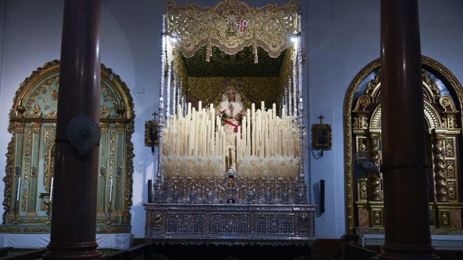 La Virgen de Gracia y Esperanza de la hermandad de San Roque ya está entronizada en su paso de palio para que este miércoles 12 de octubre salga de manera extraordinaria por la feligresía en su paso de palio.