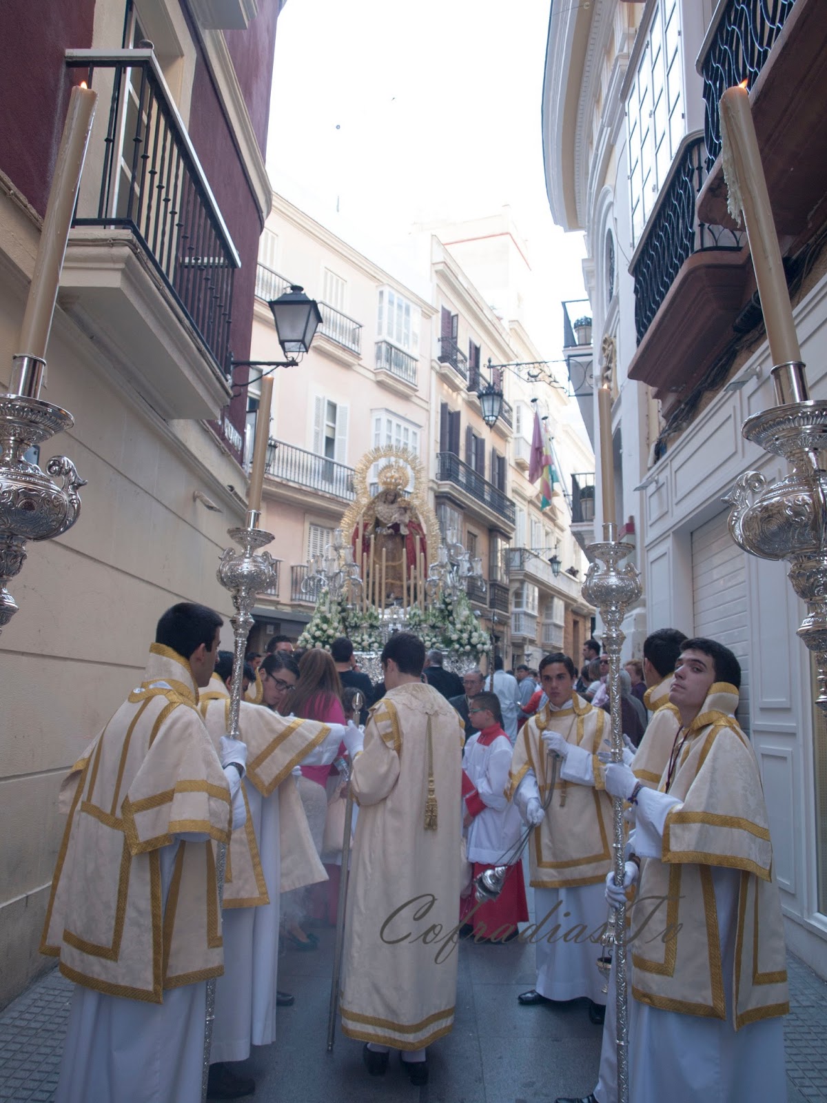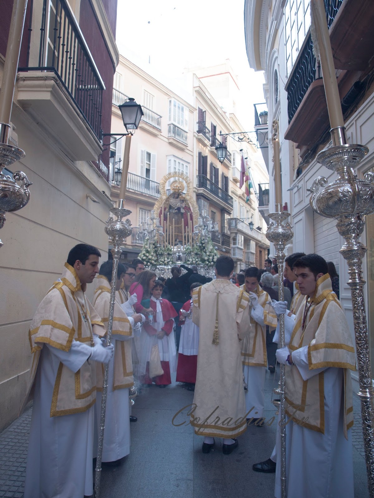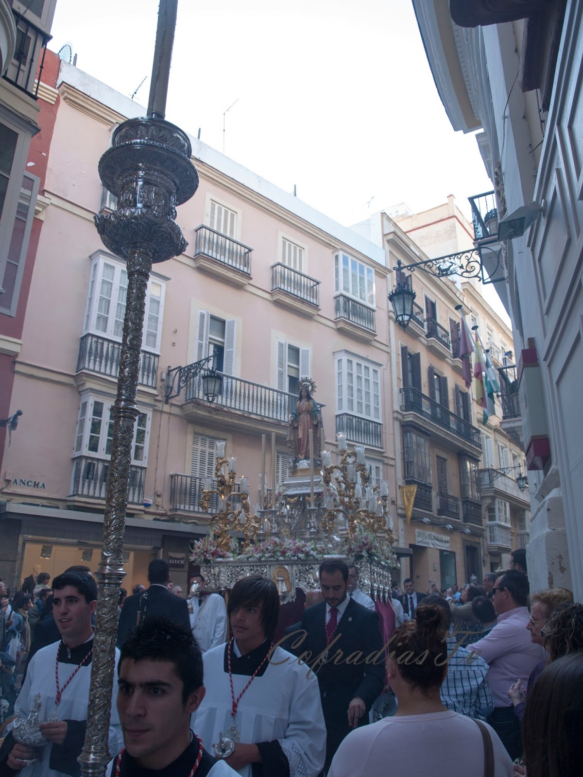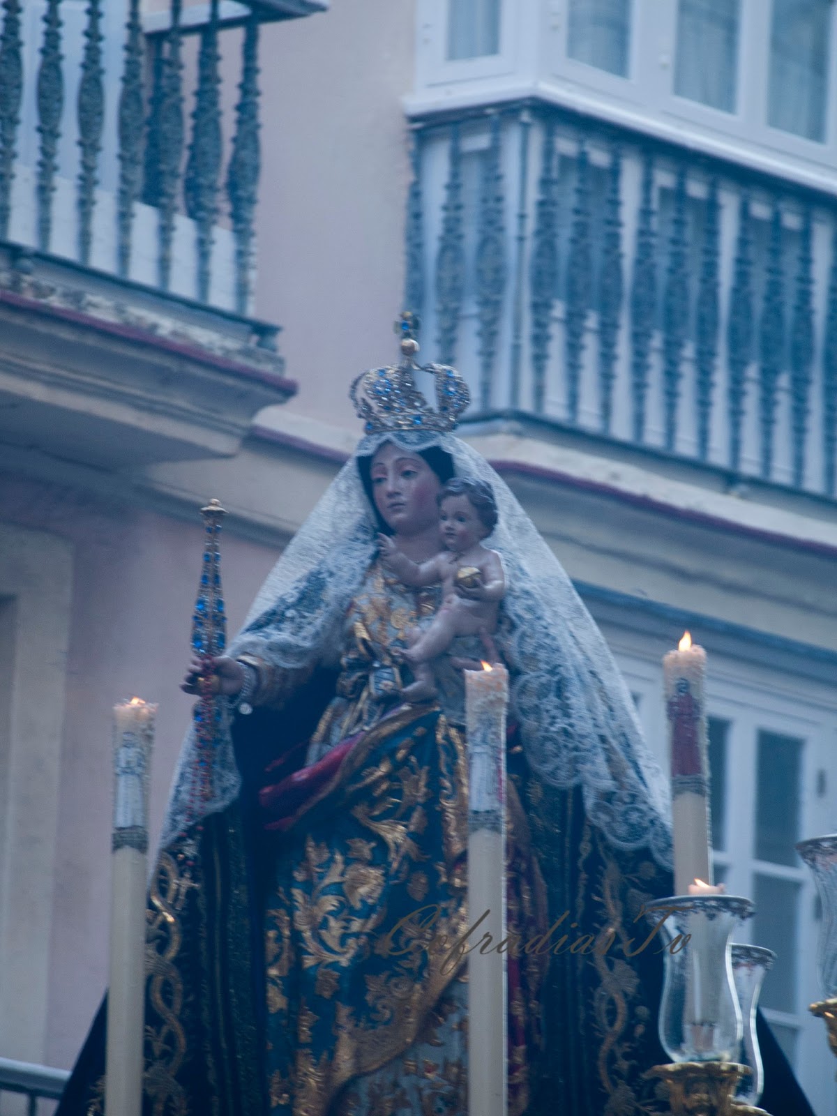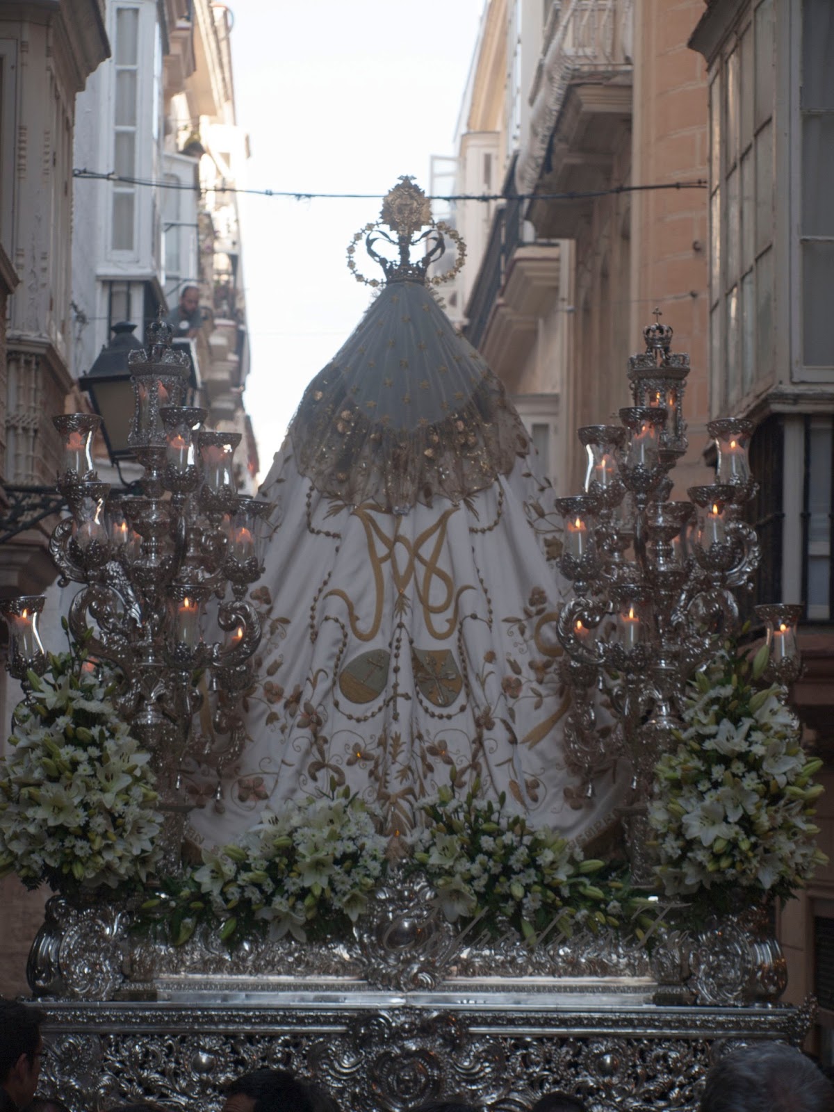 Tercera parte de las tres que conforma la galería fotográfica del Rosario Publico de Fé que se celebró en Cádiz el 04 de Mayo del 2013. Cinco imágenes de la Virgen en pasos procesionales recorrieron la ciudad en rosario público. Este será definitivamente el acto principal con el que las cofradías celebraron el Año de la Fe que ese año celebró la Iglesia universal. El proyecto inicial que se había marcado el Consejo de Hermandades y que incluía a 21 imágenes marianas se redujo considerablemente hasta las cinco imágenes