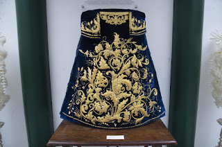 Siguiendo con el itinerario se puede ver el manto de salida de la Virgen del Refugio, obra de Esperanza Elena Caro en 1929, bajo el diseño de Juan Manuel Rodríguez Ojeda.