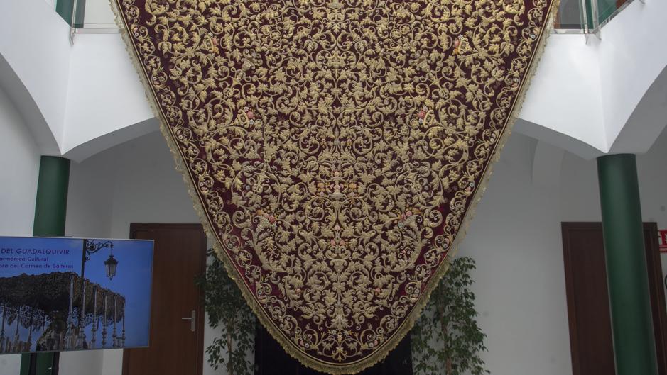 Siguiendo con el itinerario se puede ver el manto de salida de la Virgen del Refugio, obra de Esperanza Elena Caro en 1929, bajo el diseño de Juan Manuel Rodríguez Ojeda.