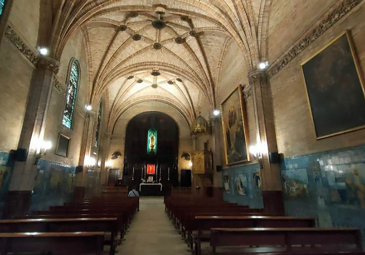 Las nervaduras parten de un friso continuo de ladrillo labrado, con motivos diferentes en cada lienzo mural. La luz natural entra a través de vidrieras ignacianas que se abren hacia la calle Trajano, aportando un ambiente recogido y espiritual.